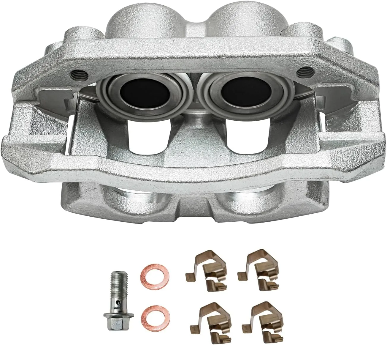 OEM calipers are made from cast aluminum alloy, chosen for its balance of strength and weight reduction. The design helps manage heat without adding excess mass to the suspension.