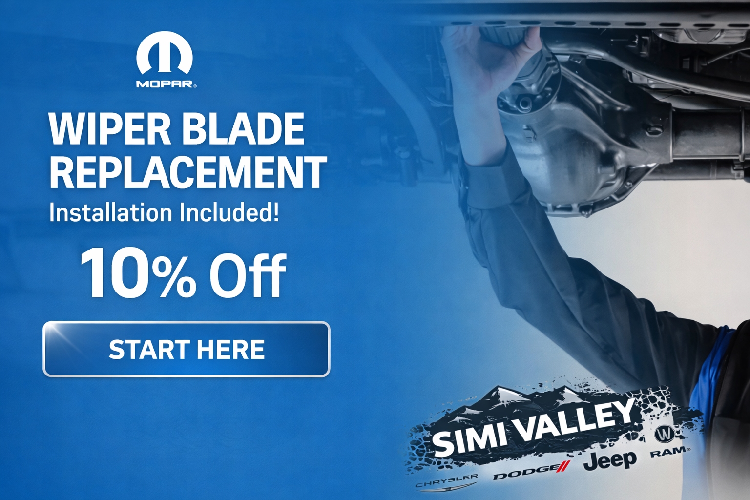 Offer valid on wiper blade replacement service only. Cannot be combined with other offers or coupons. Excludes tax, shop supplies, and fees. See service advisor for complete details. Limited-time offer.